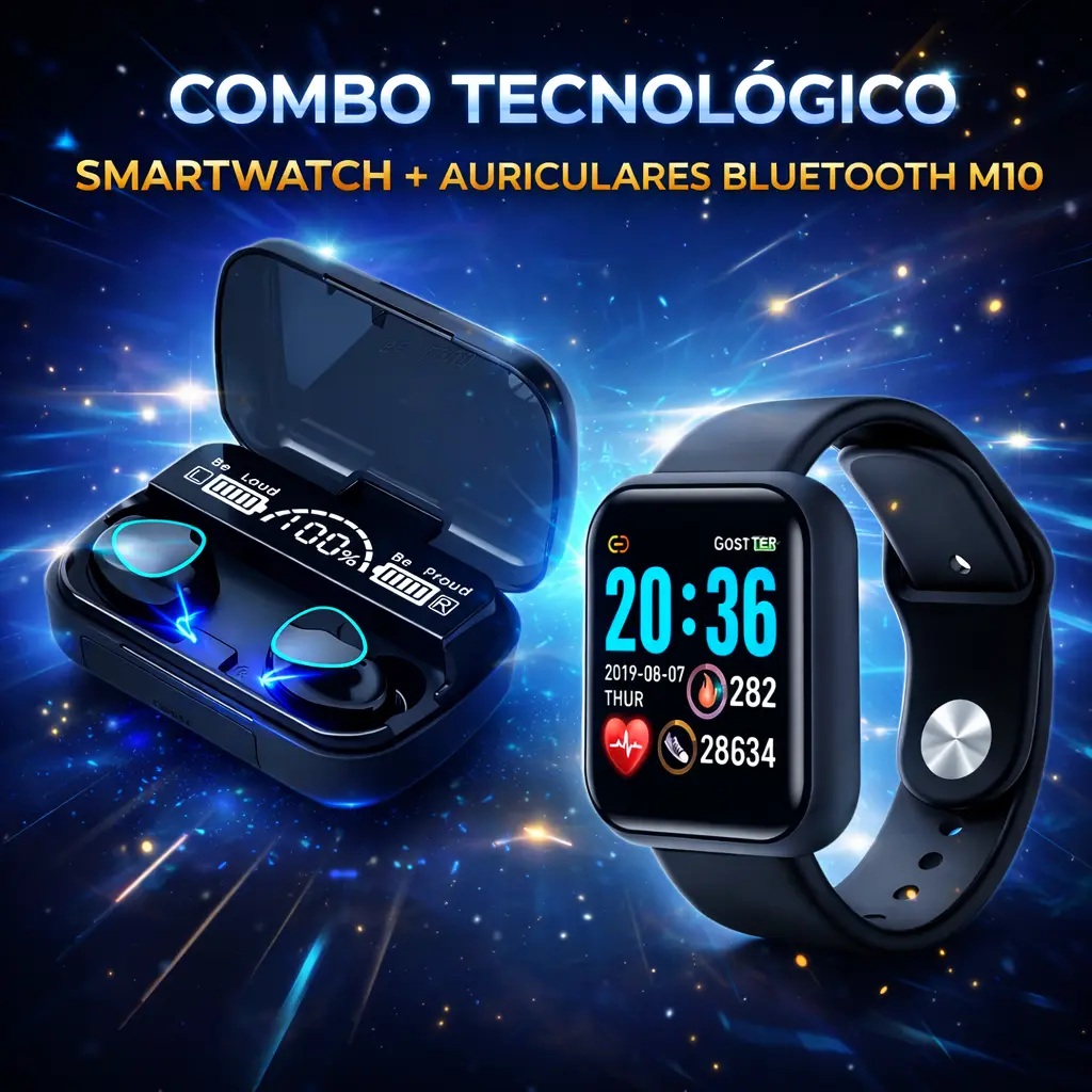 📦 COMBO TECNOLÓGICO: SMARTWATCH GOSTTER + AURICULARES BLUETOOTH M10