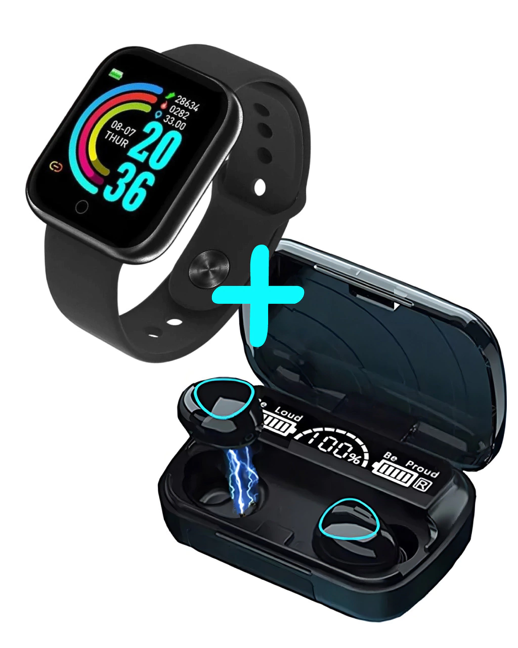 ✨ Un combo completo para mantenerte conectado, controlar tu actividad diaria y disfrutar de tu música favorita sin cables.